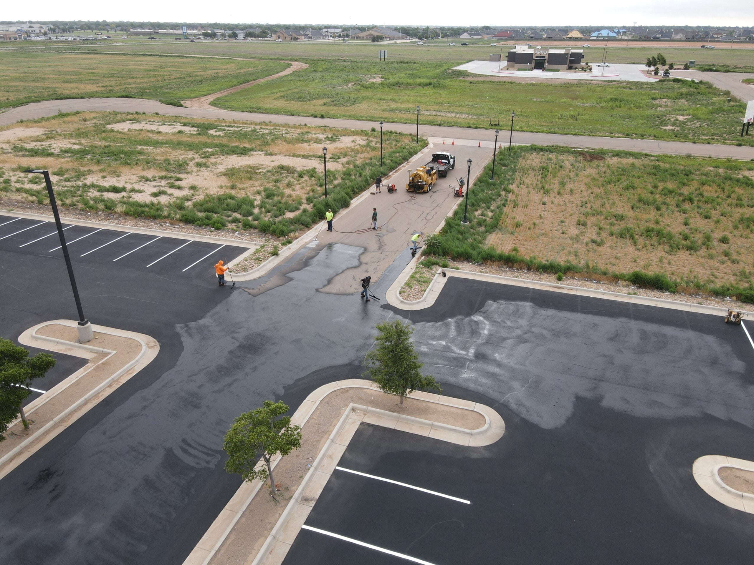 Sealcoating is a recommended practice for all types of asphalt surfaces, including driveways, parking lots, and roads. It’s a cost-effective way of maintaining the surface, extending its life, and protecting the overall value of your property, while proving a clean new look.